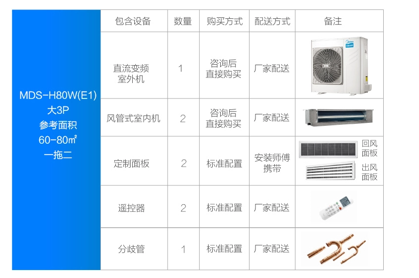 美的 一拖二變頻一級能效 多聯(lián)風管機 3匹 家用中央空調 MDS-H80W(E1)