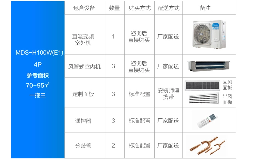 美的 一拖三變頻一級能效 多聯(lián)風管機 4匹 家用中央空調(diào) MDS-H100W(E1)